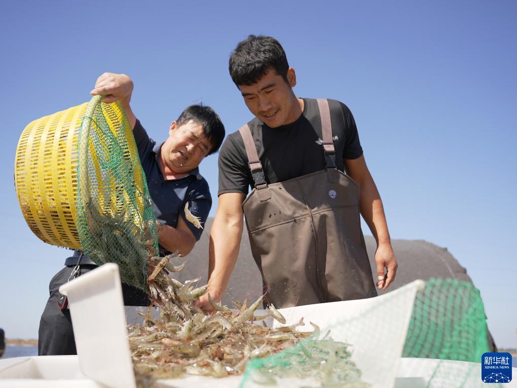 金秋時(shí)節(jié),在河北省滄州市海興縣鹽堿灘涂養(yǎng)殖池,養(yǎng)殖戶正忙著捕撈對蝦,一派繁忙景象。海興縣地處渤海之濱,土地鹽堿化嚴(yán)重,種植效益差。近年來,當(dāng)?shù)匾劳宣}堿灘涂搞起了特色水產(chǎn)規(guī)?;B(yǎng)殖,打造“藍(lán)色糧倉”,目前已成為海興縣主導(dǎo)產(chǎn)業(yè)之一。