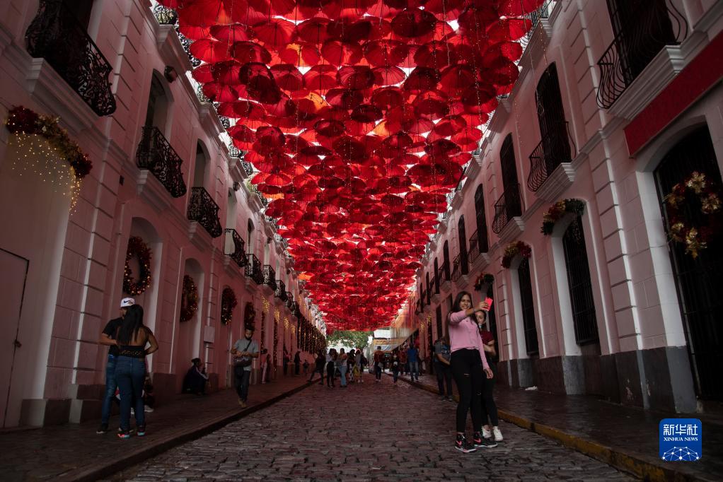 2021年12月13日,人們在位于委內瑞拉首都加拉加斯市中心的一條街道上拍照。