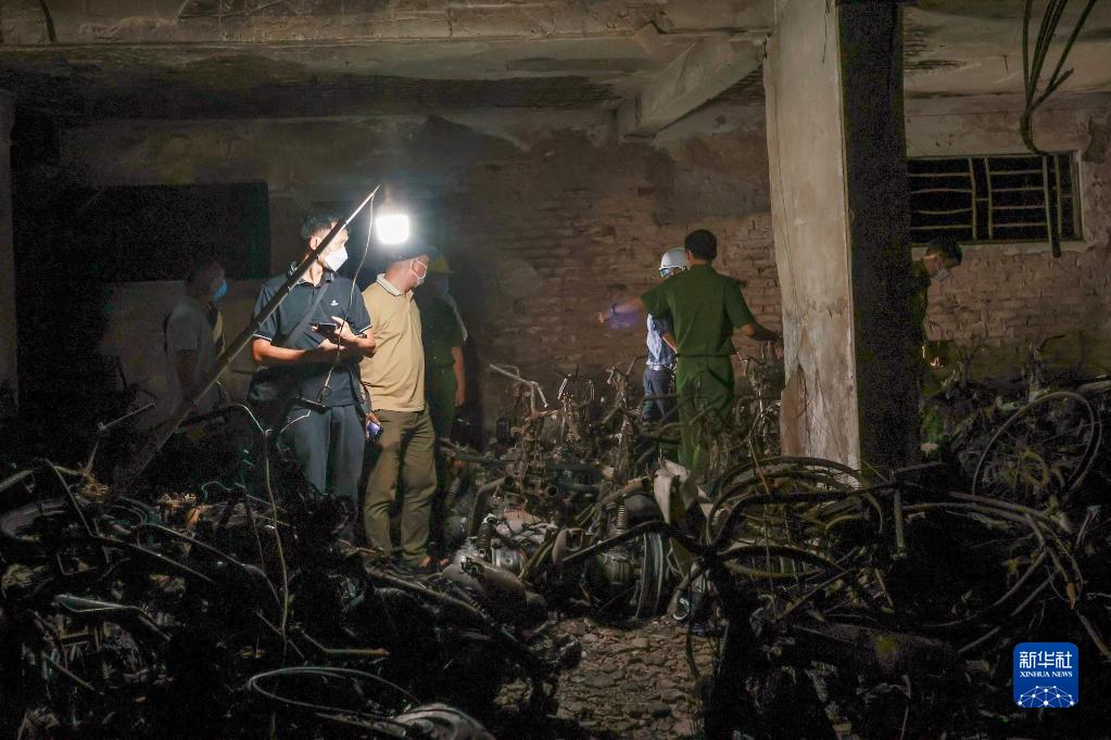 9月13日,在越南河內,工作人員在事故現場調查火災原因。