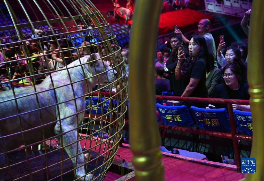9月13日,在隆承國際馬戲度假區,觀眾拍攝巡演的動物。