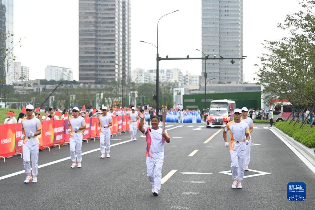 當(dāng)日,杭州亞運會火炬在浙江省臺州傳遞。
