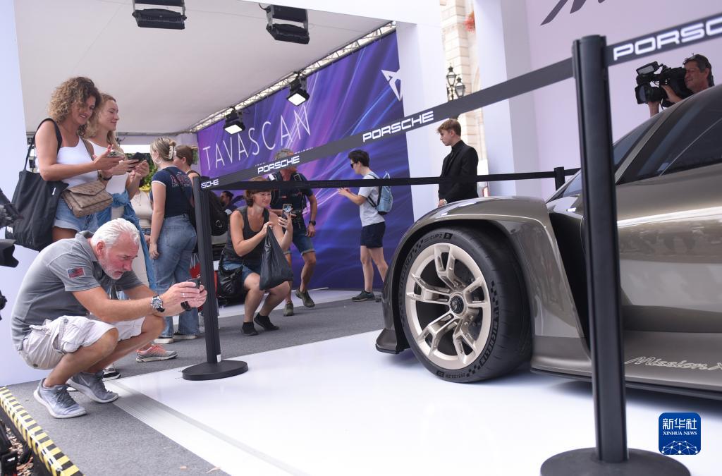 9月13日,觀眾在奧地利維也納電動汽車日活動現(xiàn)場拍攝一輛保時捷電動車。