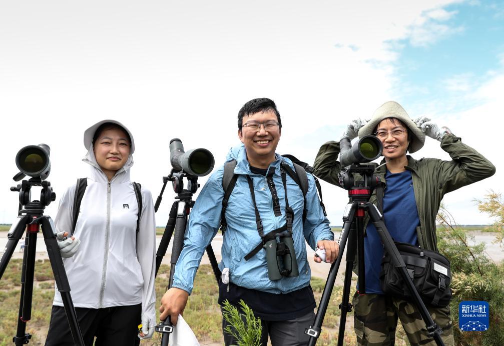 賈亦飛(中)和他的團(tuán)隊(duì)成員楊洪燕(右)、付婷(左)(2023年8月19日攝)。賈亦飛副教授來(lái)自北京林業(yè)大學(xué)生態(tài)與自然保護(hù)學(xué)院東亞-澳大利西亞候鳥遷徙研究中心,是東臺(tái)野外研究站的負(fù)責(zé)人。他從2014年開(kāi)始研究中國(guó)濱海濕地保護(hù)與管理,通過(guò)長(zhǎng)期的鳥類與底棲動(dòng)物監(jiān)測(cè),系統(tǒng)研究條子泥濕地與關(guān)鍵水鳥-底棲動(dòng)物-環(huán)境耦合關(guān)系,從事極危物種勺嘴鷸等小型鸻鷸類食物資源、瀕危物種小青腳鷸的種群動(dòng)態(tài)等多個(gè)方面研究工作。新華社記者 楊磊 攝