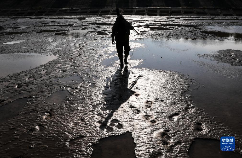 李東明(右)在東臺(tái)條子泥灘涂上調(diào)查拍攝鳥(niǎo)類(2023年8月19日攝)。新華社記者 楊磊 攝