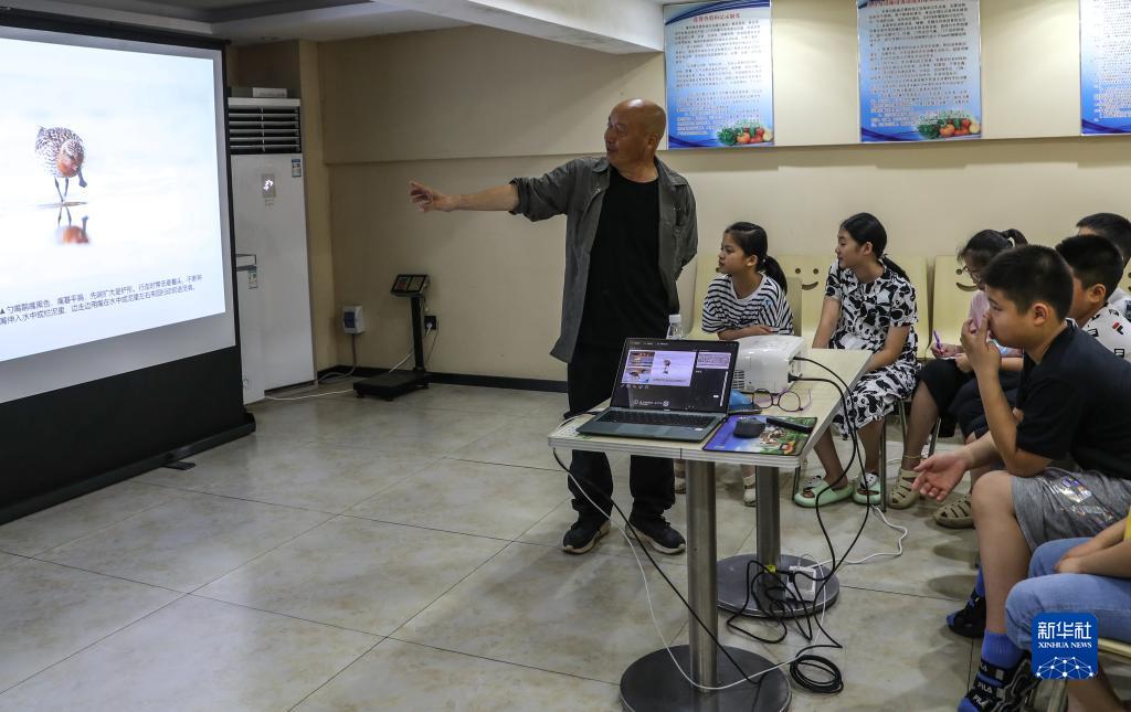 李東明在客棧為游客介紹普及鳥類知識(2023年8月19日攝)。新華社記者 楊磊 攝