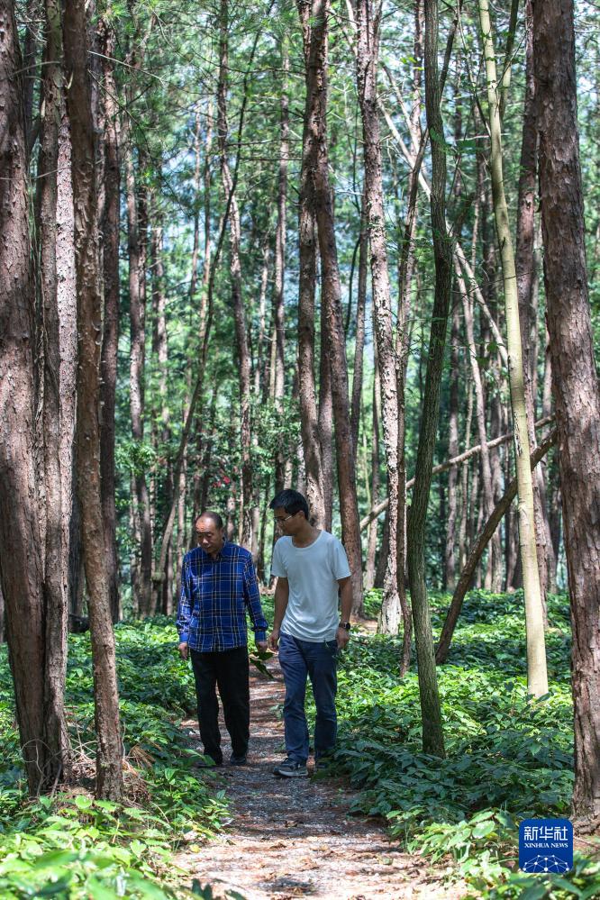 9月13日,在重慶市城口縣高燕鎮(zhèn)星光村箭葉淫羊藿種植基地,駐村第一書(shū)記馬凱軍(右)和駐村工作隊(duì)隊(duì)員蔡道武查看箭葉淫羊藿的長(zhǎng)勢(shì)情況。