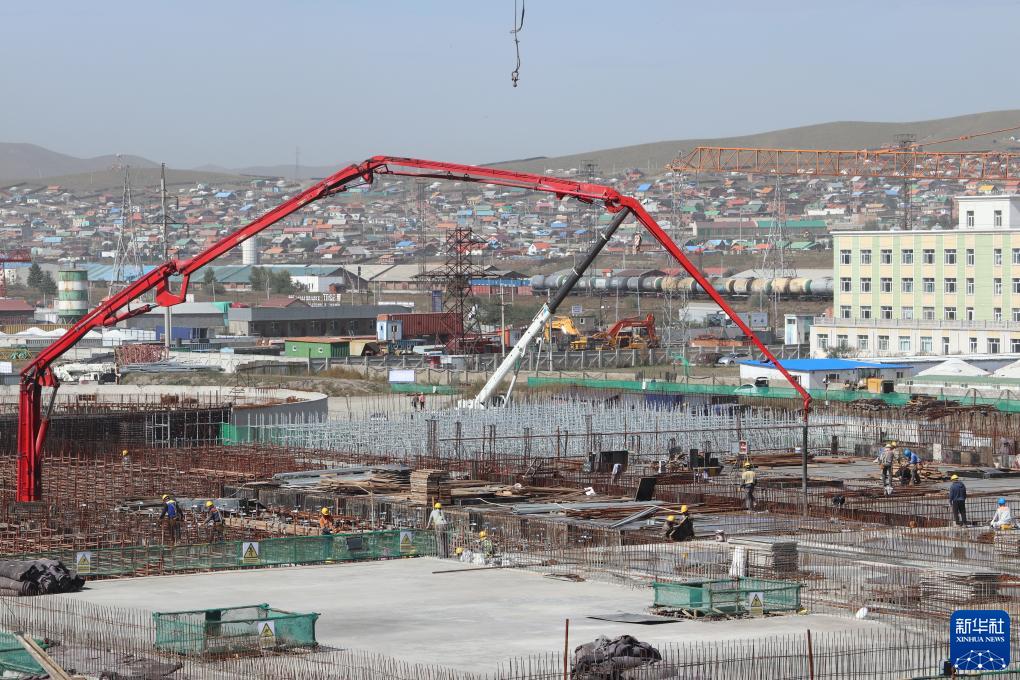 9月13日,在蒙古國(guó)首都烏蘭巴托附近,工人們?cè)跒跆m巴托中央污水處理廠項(xiàng)目工地工作。