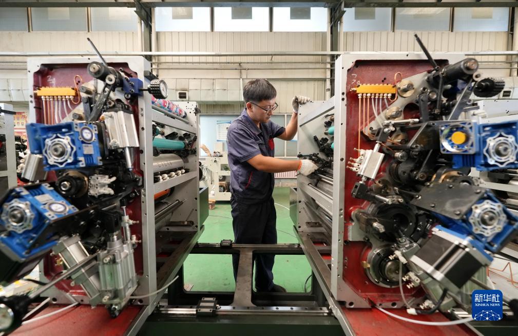 9月15日,位于玉田縣的河北萬杰機械科技股份有限公司工人在組裝印刷機械。