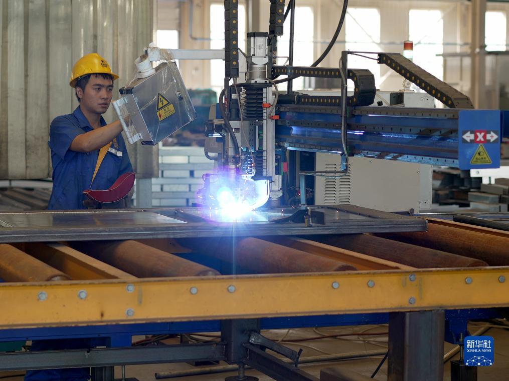 9月15日,工作人員在河北科源智能電氣有限公司生產車間操控設備進行自動焊接作業。