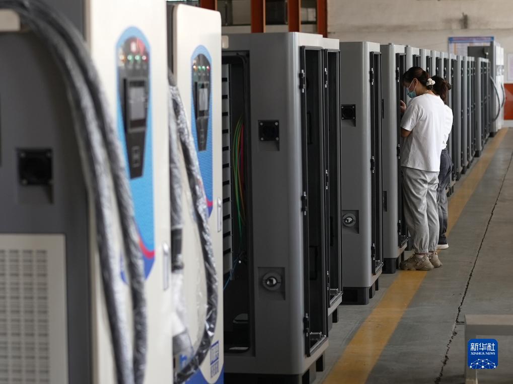 9月15日,工作人員在滄州智慧城科技有限公司生產(chǎn)車間對直流充電樁進行內(nèi)部組裝作業(yè)。