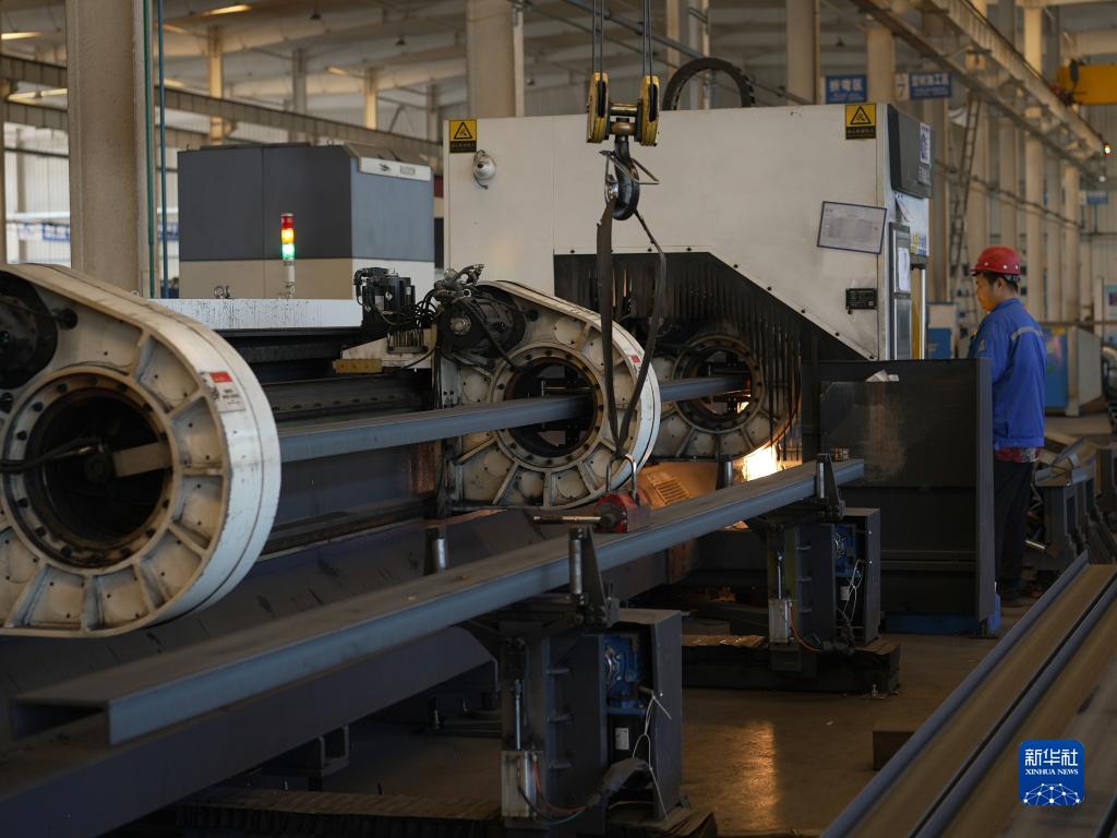 9月15日,工作人員在河北科源智能電氣有限公司生產車間操控設備對型材進行激光切割。