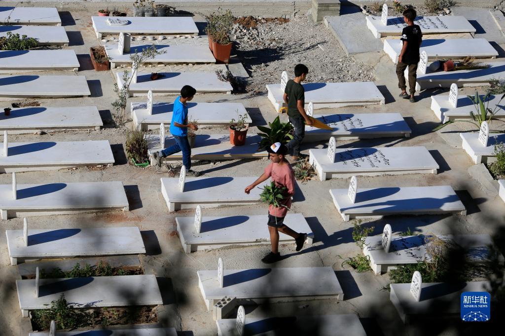 9月14日,人們走在黎巴嫩西頓一處墓地。