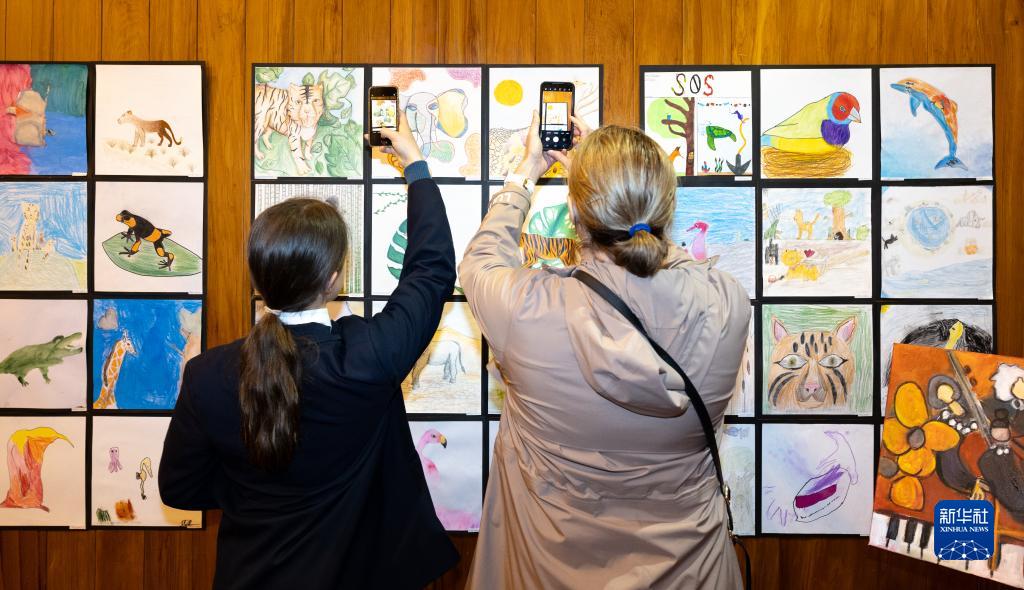 9月15日,在新西蘭懷帕市,人們在2023新西蘭中國主題圖書展暨動物保護中新青少年藝術展上參觀。