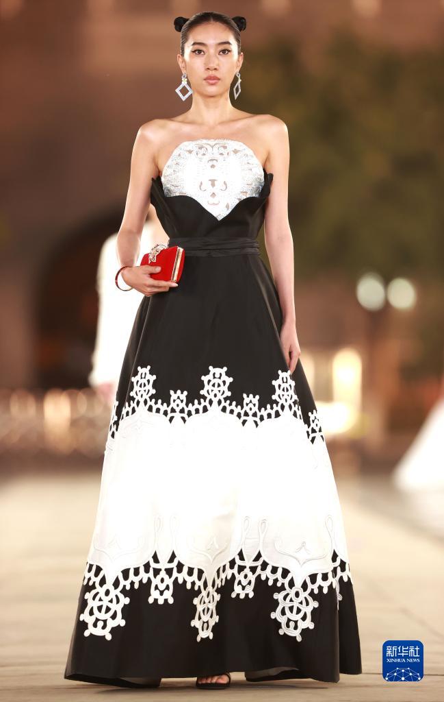 9月15日晚,2024春夏北京時裝周開幕式在北京前門大街舉行,在開幕式上,勞倫斯·許攜高級定制時裝上演“壯美中軸線”時尚大秀。