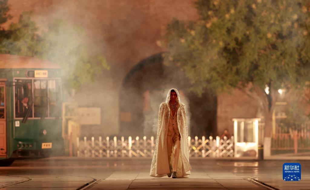 9月15日晚,2024春夏北京時裝周開幕式在北京前門大街舉行,在開幕式上,勞倫斯·許攜高級定制時裝上演“壯美中軸線”時尚大秀。