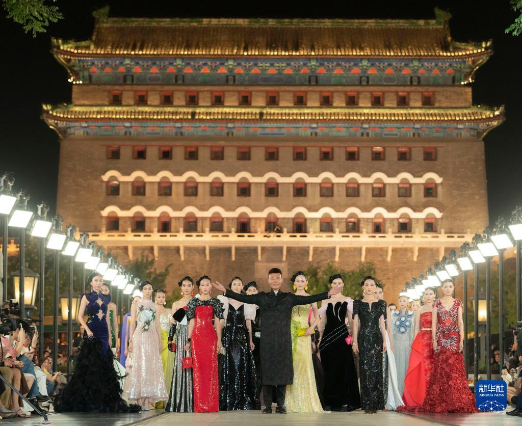 9月15日晚,2024春夏北京時裝周開幕式在北京前門大街舉行,在開幕式上,勞倫斯·許攜高級定制時裝上演“壯美中軸線”時尚大秀。