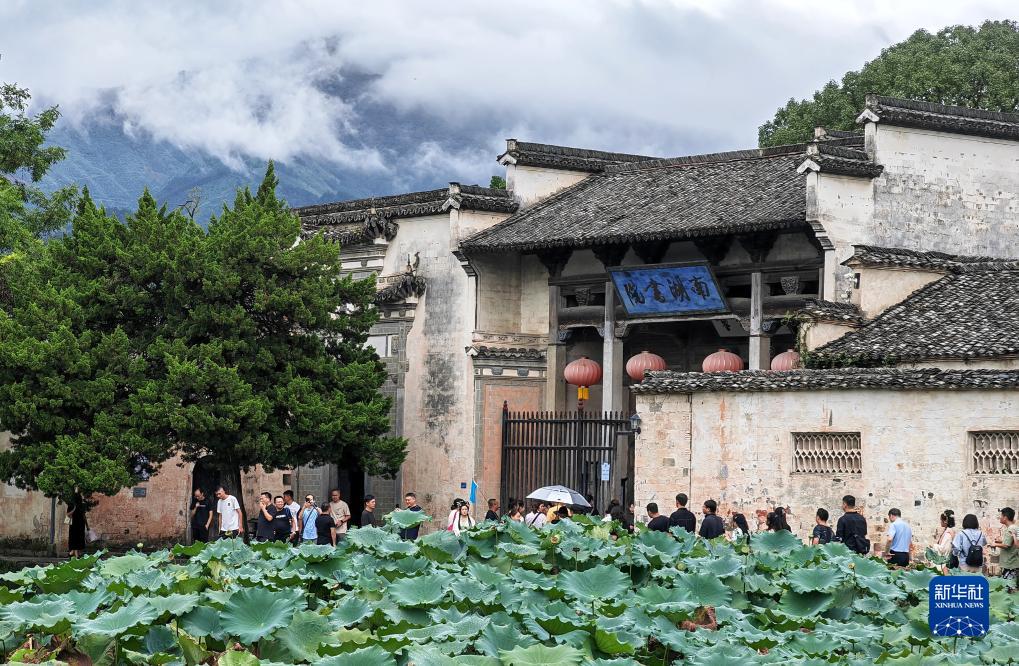 這是游客們在黃山市黟縣宏村內游覽(9月13日攝)。