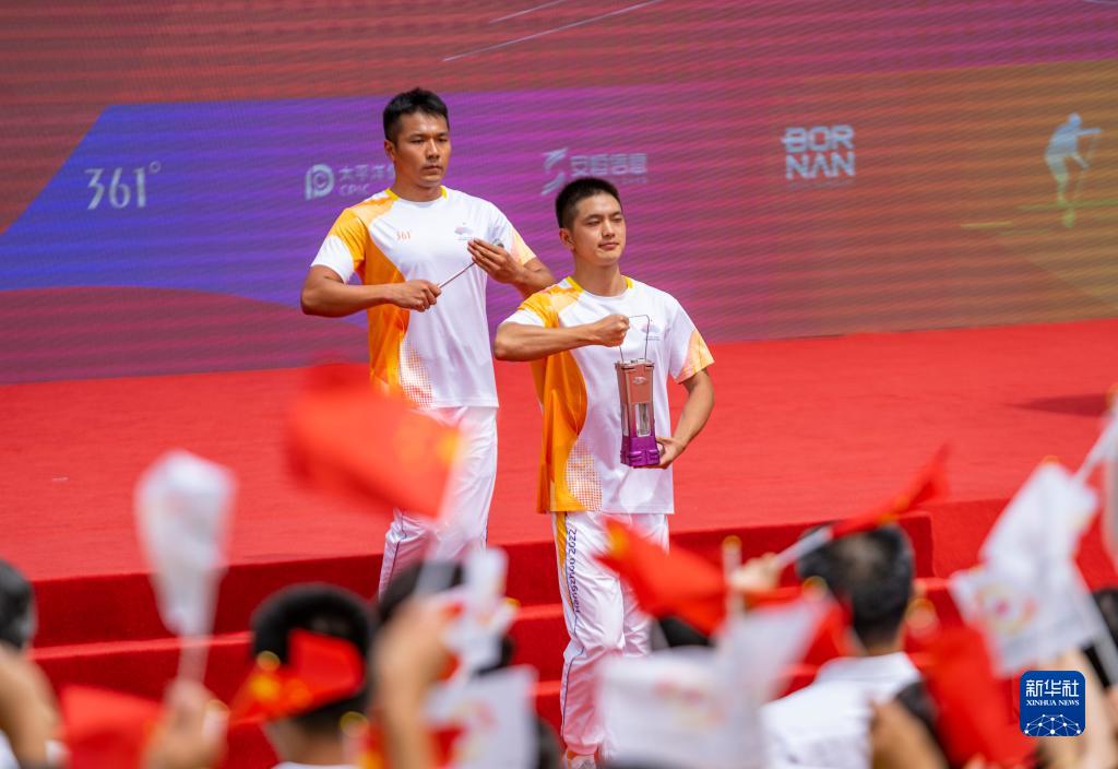 這是杭州亞運會火炬傳遞麗水站收火儀式現場( 9月16日攝)。
