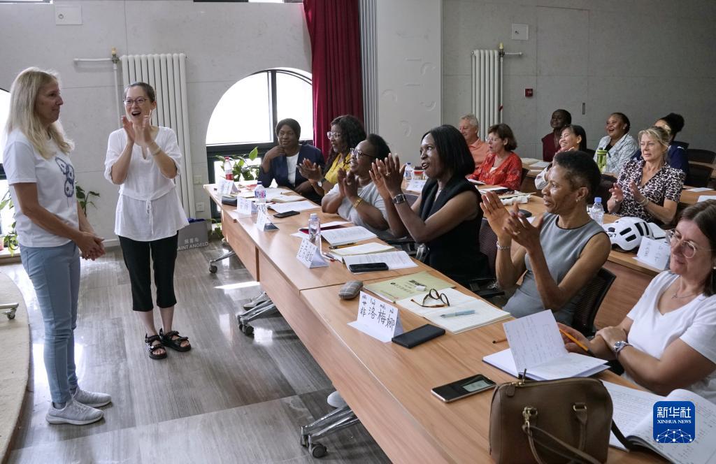 外籍居民在北京市朝陽區麥子店街道的社區新時代文明實踐所參加漢語培訓班(9月11日攝)。