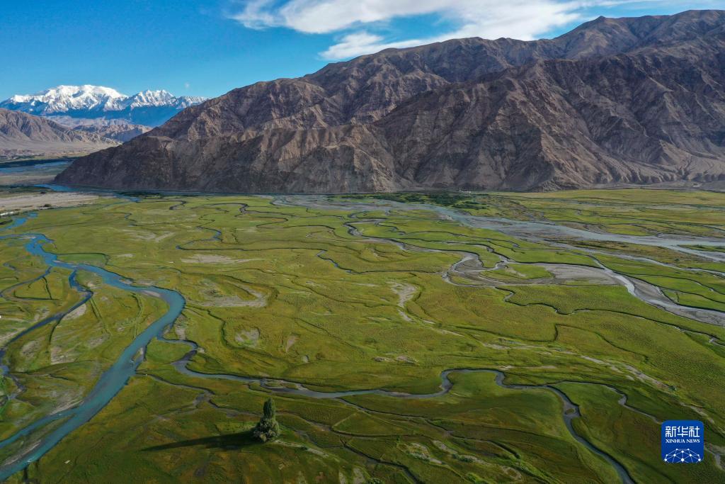 新疆塔什庫爾干塔吉克自治縣金草灘濕地景觀(8月28日攝,無人機(jī)照片)。