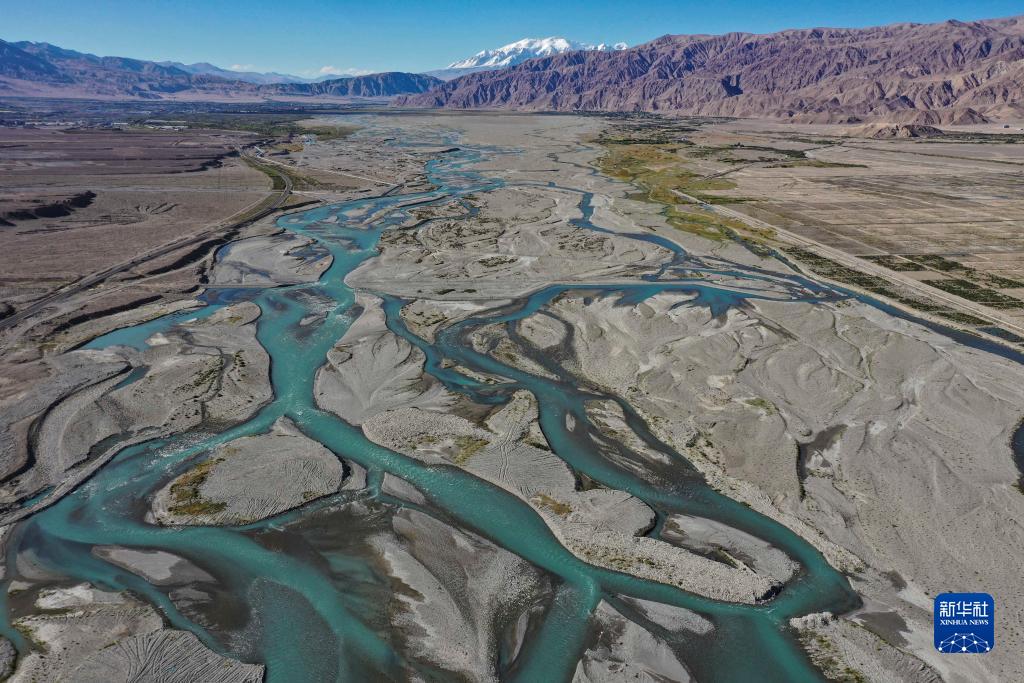 奔流的塔什庫爾干河(8月29日攝,無人機照片)。