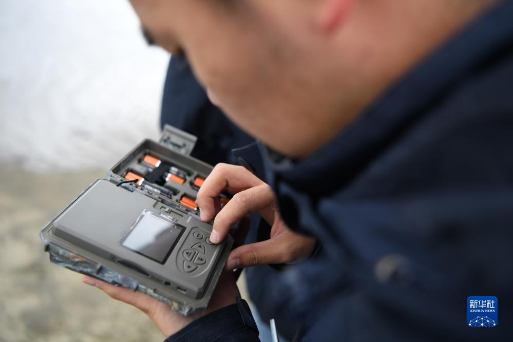 甘肅黃河首曲國家級自然保護區(qū)管護中心曼日瑪保護站的工作人員在保護區(qū)內(nèi)檢查紅外相機的工作情況(7月5日攝)。