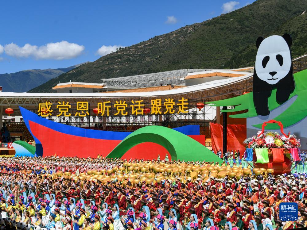 當(dāng)日,四川阿壩藏族羌族自治州成立70周年慶祝大會(huì)主題文藝演出在馬爾康市舉行。