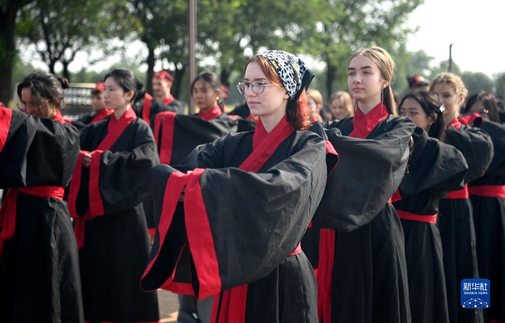 9月16日,中外大學生身著漢代服飾感受中國傳統文化。