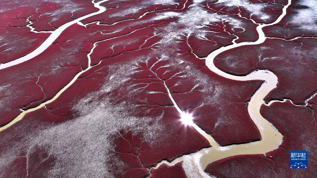 遼寧省盤錦紅海灘國家風景廊道景區內的紅海灘(9月12日攝,無人機照片)。