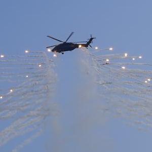 9月16日,陸軍“風雷”飛行表演隊直-19武裝直升機進行飛行表演。