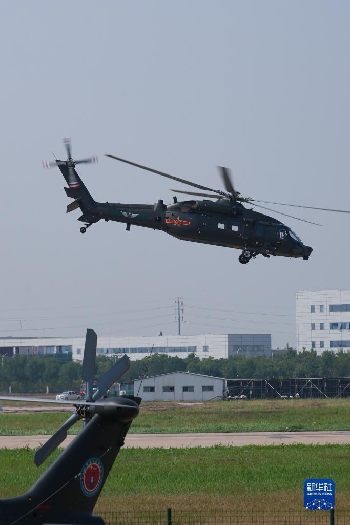 9月16日,陸軍“風(fēng)雷”飛行表演隊直-20戰(zhàn)術(shù)通用直升機進行飛行表演。