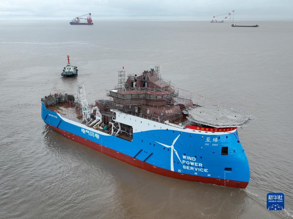 9月16日,風電運維母船在江蘇啟東海工船舶工業園下水(無人機照片)。