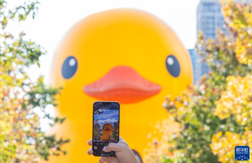 當日,一只6層高、重約13.6噸(30000磅)的橡皮“大黃鴨”亮相多倫多,吸引了眾多游人。這是“大黃鴨”繼2017年后再次來到多倫多,從9月16日至17日向公眾開放。