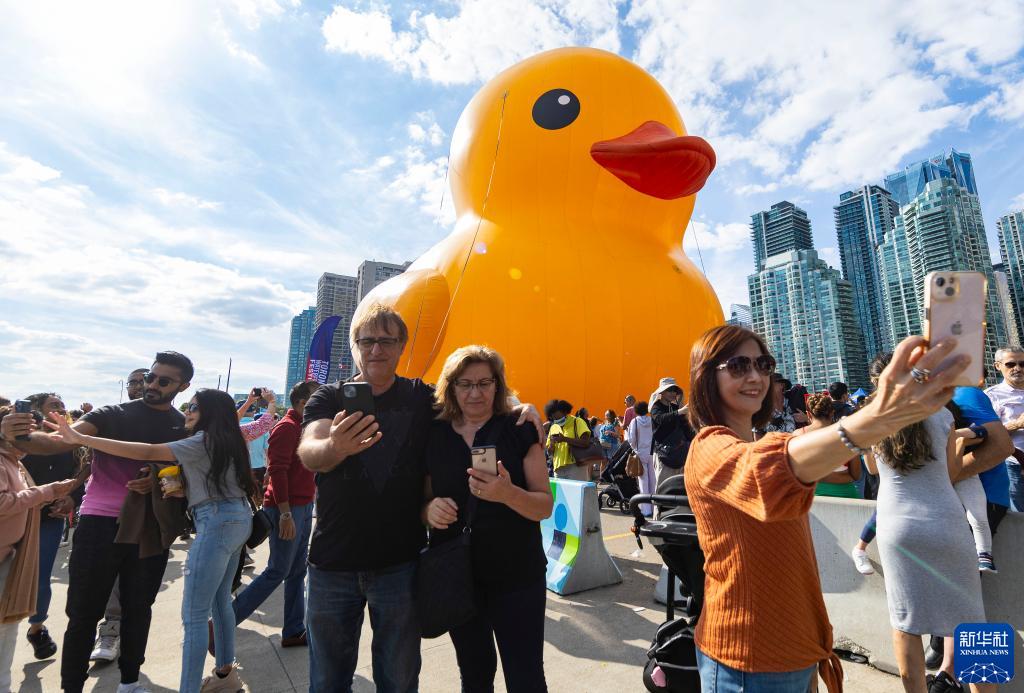 當日,一只6層高、重約13.6噸(30000磅)的橡皮“大黃鴨”亮相多倫多,吸引了眾多游人。這是“大黃鴨”繼2017年后再次來到多倫多,從9月16日至17日向公眾開放。