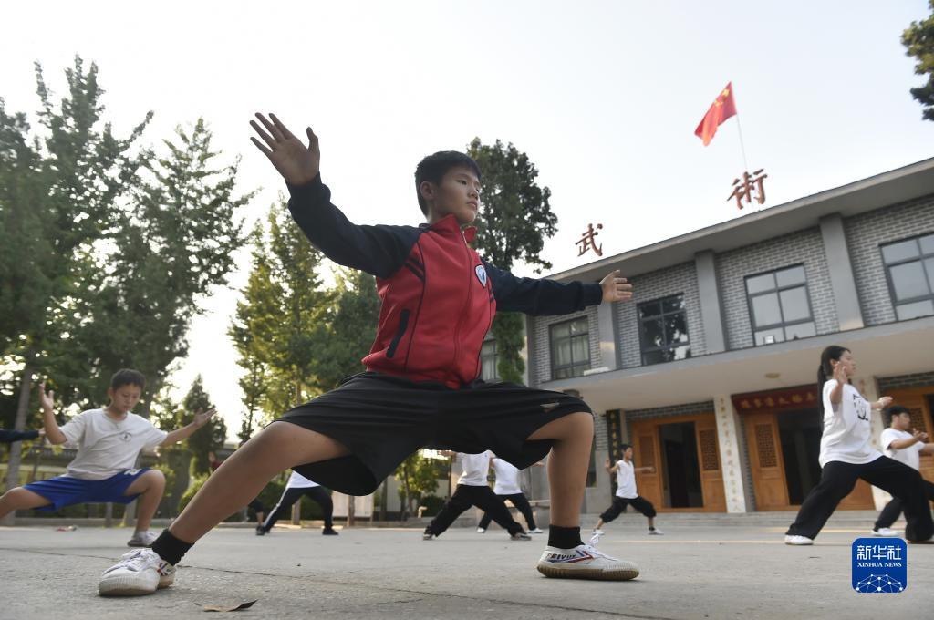 9月14日,河南溫縣陳家溝一家武術(shù)學(xué)校的學(xué)員在練習(xí)太極拳。
