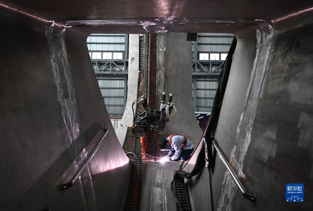 9月15日,工作人員在聚變堆主機關鍵系統綜合研究設施(CRAFT)1/8真空室及總體安裝實驗平臺進行設備焊接。
