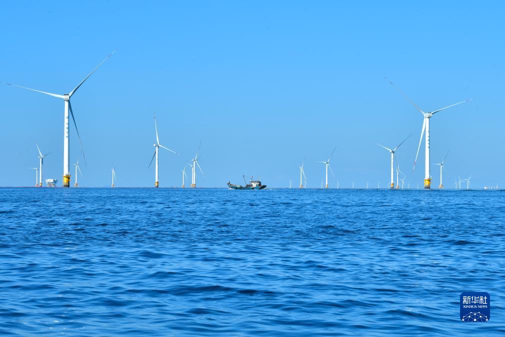 9月13日拍攝的大連莊河海上風電項目。目前,大連莊河已建成海上風電項目4個,裝機容量105萬千瓦。