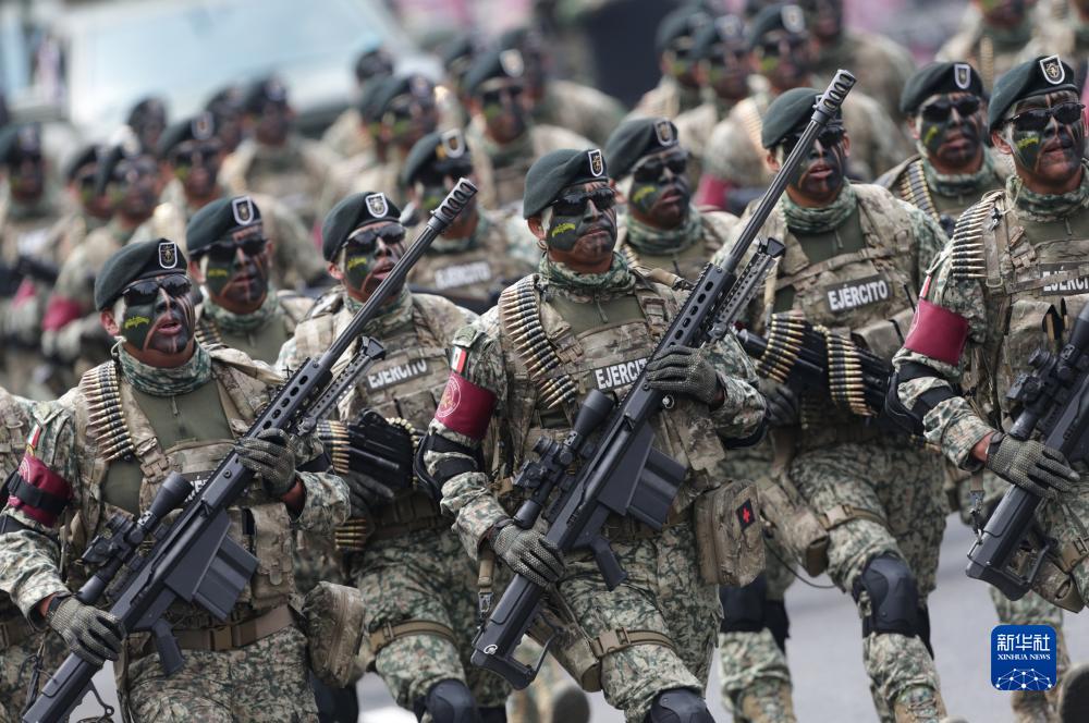 9月16日,士兵在墨西哥首都墨西哥城參加閱兵式。