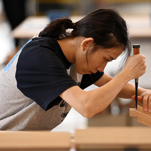 9月17日,參賽選手在參加木工項目比賽。