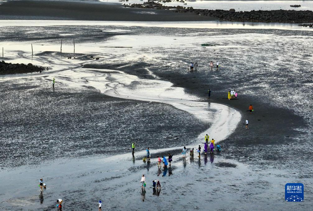 9月16日,游客在啟東“十里海灣”灘涂上游玩(無人機(jī)照片)。