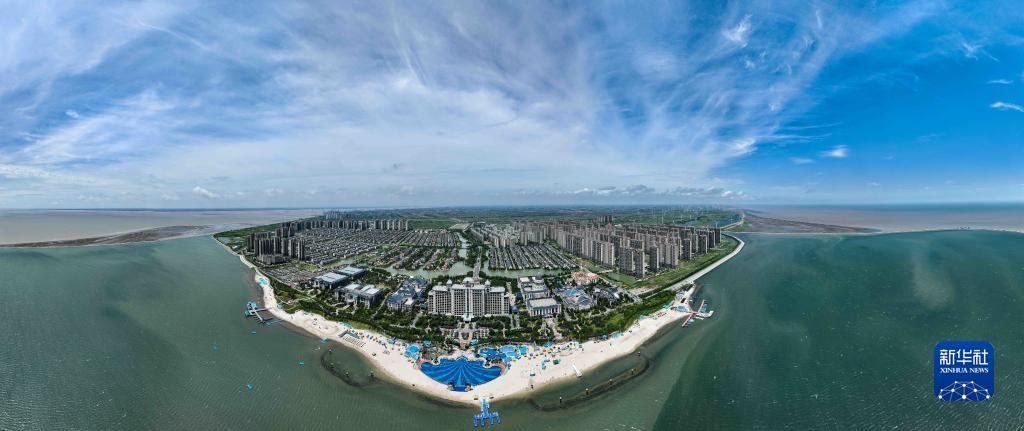 這是啟東市碧海銀沙景區(7月25日攝,無人機照片)。