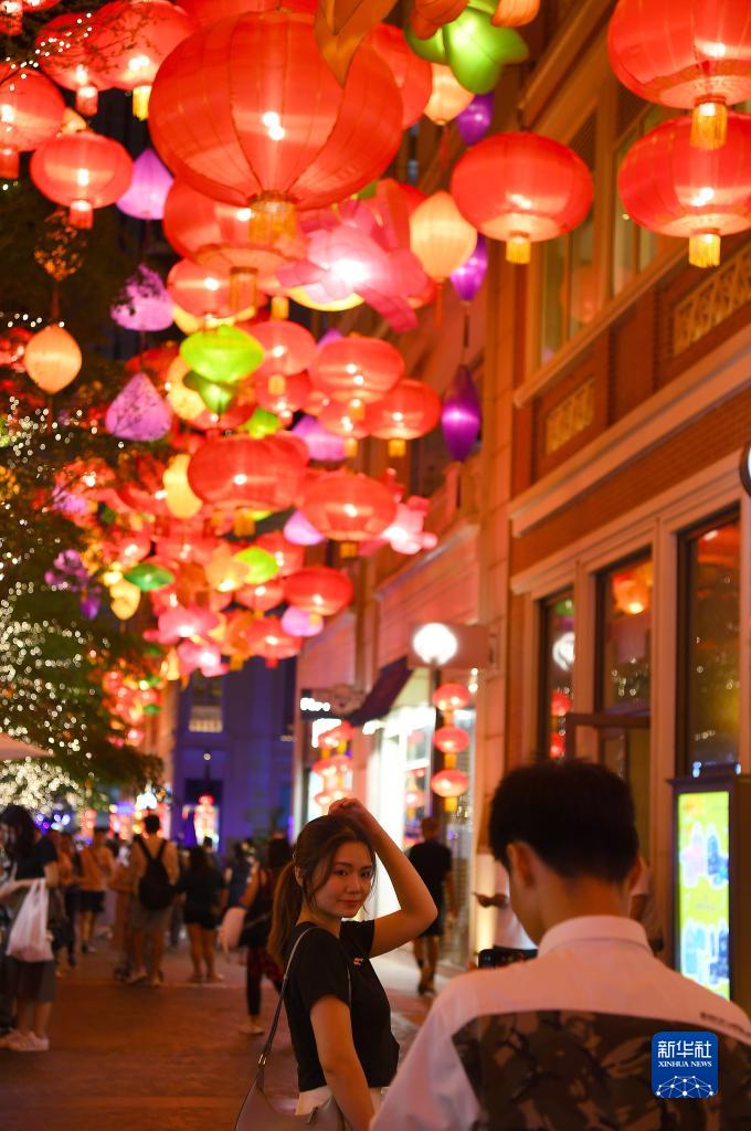 為迎接中秋佳節的到來,香港利東街舉辦“躍兔·迎月”戶外彩燈會。約200米長的林蔭大道懸掛起800多個五彩繽紛的中式燈籠,營造出喜慶的佳節氣氛。
