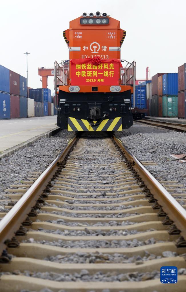 9月17日,X8202次中歐班列(鄭州)停靠在國鐵集團鄭州局圃田車站。