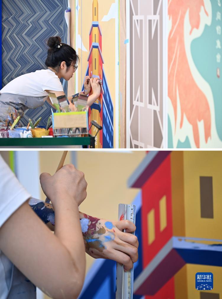 9月18日,選手在國家會展中心(天津)參加油漆與裝飾項目的比賽(拼版照片)。