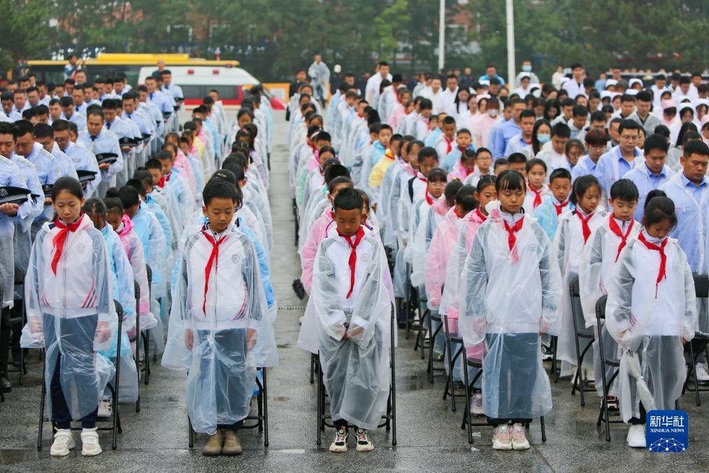 9月18日,青少年在侵華日軍第七三一部隊罪證陳列館前默哀。