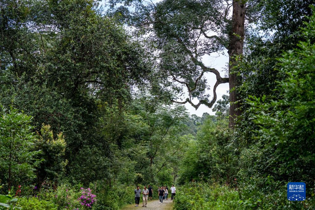 游人們走在景邁山大平掌古茶林中(9月17日攝)。