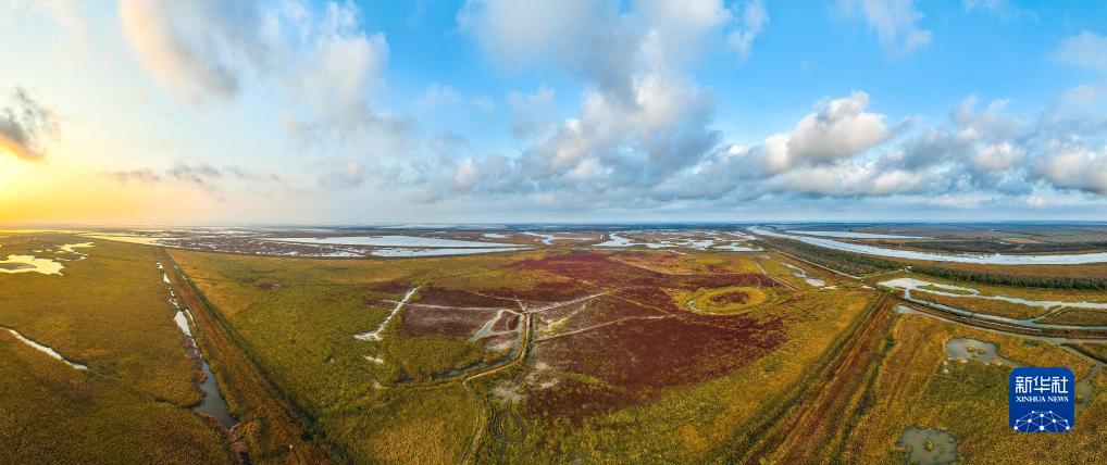 晨曦中的鹽城濕地珍禽國家級(jí)自然保護(hù)區(qū)景色(2022年11月8日攝,無人機(jī)照片)。