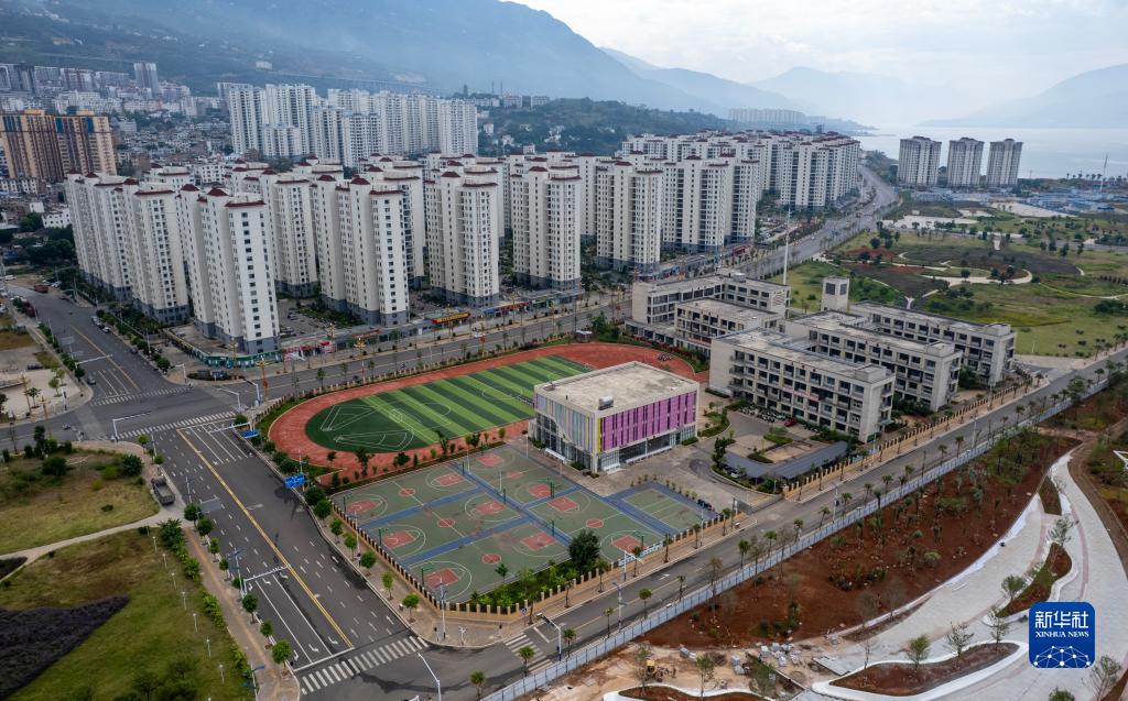 這是9月18日拍攝的位于巧家縣城的白鶴灘水電站移民搬遷安置樓房及配套的立鶴小學(xué)(無(wú)人機(jī)照片)。