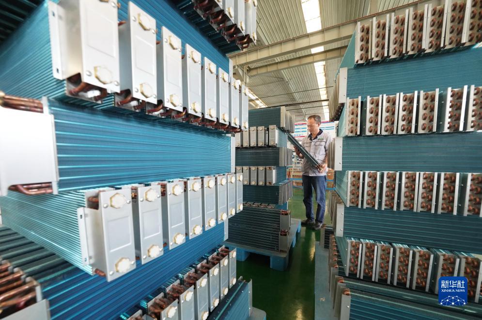 9月19日,工人在晉州市一家制冷設備企業的生產車間工作。