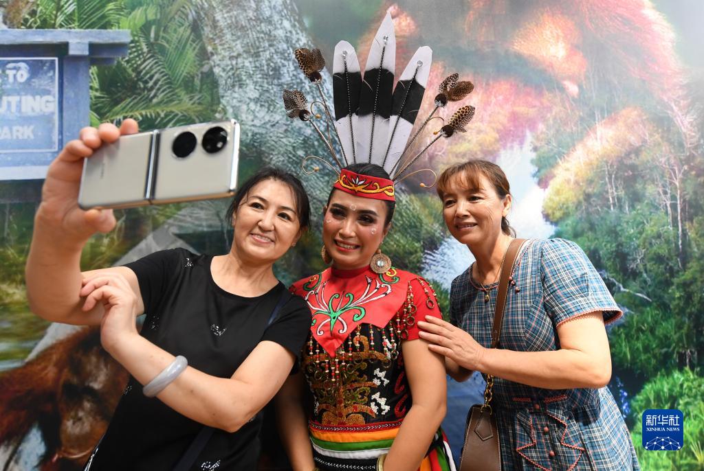 9月19日,觀眾在東博會上和來自印度尼西亞的演員(中)合影。